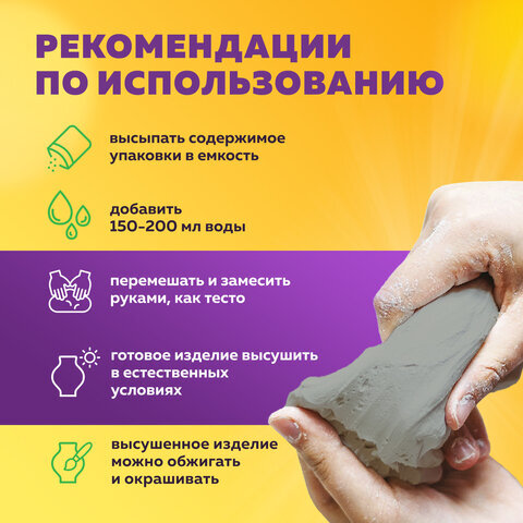 • Экологически чистая кембрийская глина BRAUBERG HOBBY, добываемая в России на Чкаловском месторождении, идеально подойдет для художественной и скульптурной лепки. Способствует развитию мелкой моторики, творческих способностей и пространственного мышления.
