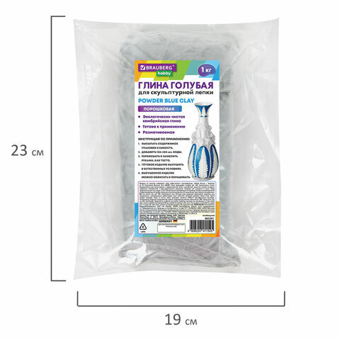 Глина для лепки голубая, 1 кг, порошковая, готовая, размачиваемая, BRAUBERG HOBBY, 665361