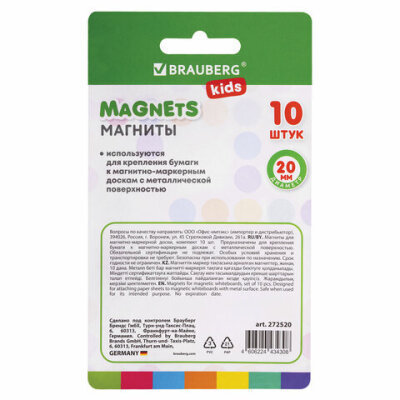 Магниты BRAUBERG KIDS "MACAROONS" актуальных пастельных цветов – прекрасный выбор для надёжного крепления листов бумаги на магнитных досках, флипчартах и холодильниках.