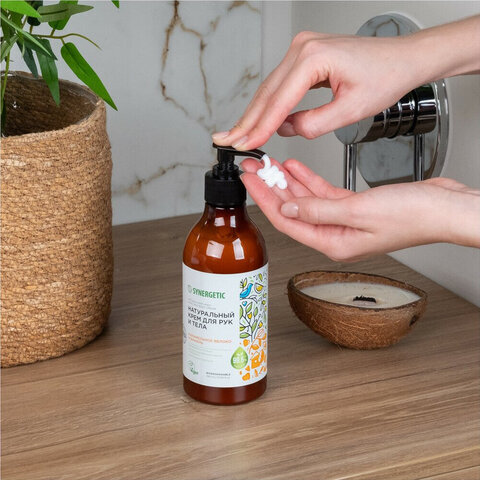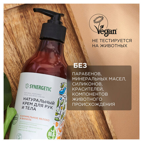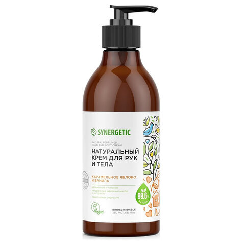 Крем для рук и тела 380 мл SYNERGETIC "Карамельное яблоко и ваниль", натуральный, увлажняющий, дозатор, 300008