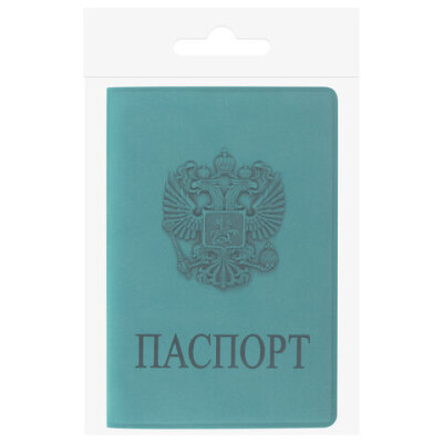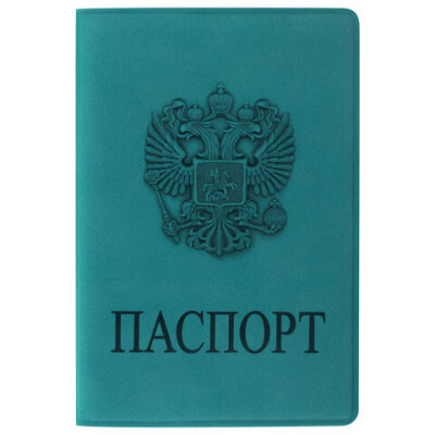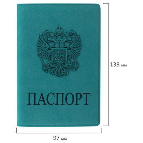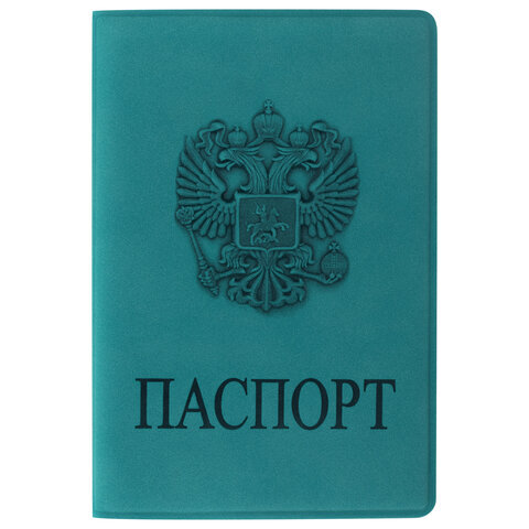 Обложка для паспорта, мягкий полиуретан, "Герб", темно-бирюзовая, STAFF, 237611