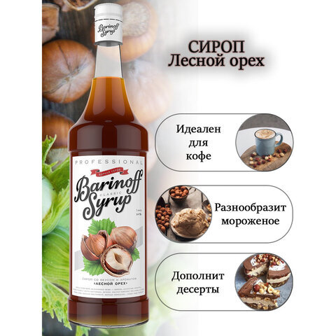 Сироп BARINOFF "Лесной орех" - это полностью натуральный продукт с густой консистенцией, который широко применяется в кулинарии как ингредиент блюд и напитков и пропитка для выпечки.