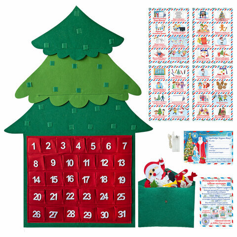 Фетровый адвент-календарь 100x50 см, 24 украшения, 31 задание + 1 в подарок, 3 м гирлянда, ЗОЛОТАЯ СКАЗКА, 592140