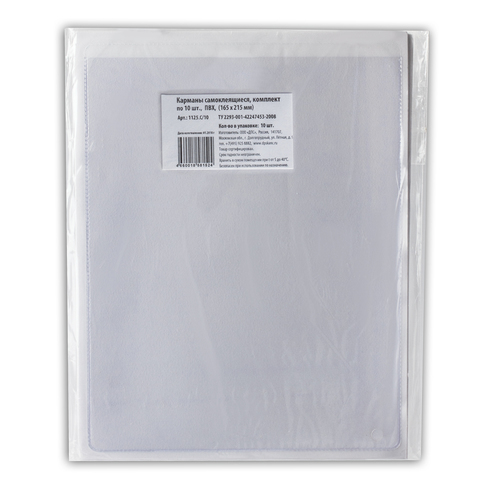 Карманы самоклеящиеся на любую поверхность ФОРМАТА А5 (165х215 мм), КОМПЛЕКТ 10 шт., ДПС, 1125.C/10