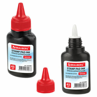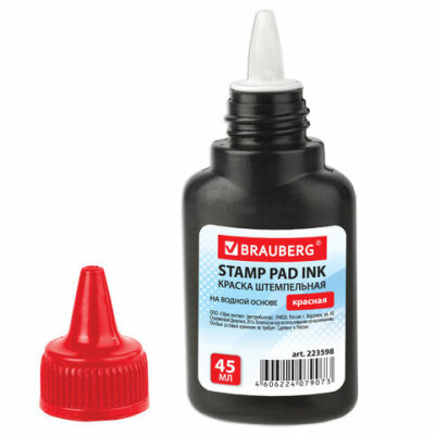 Краска штемпельная BRAUBERG, красная, 45 мл, на водной основе, 223598
