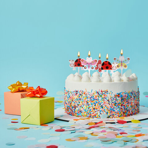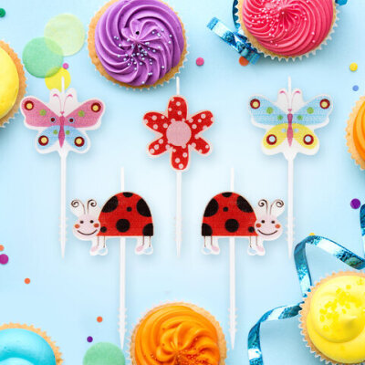 Свечи фигурные для торта на шпажках "Бабочки, божьи коровки", 5 шт, 2,5х3 см, ЗОЛОТАЯ СКАЗКА, 591463