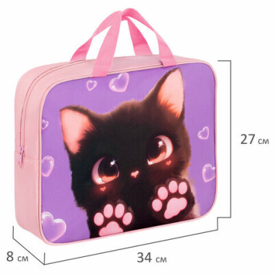 Папка на молнии с ручками BRAUBERG А4, 1 отделение, полиэстер, 80 мм, "Paw prints", 273300