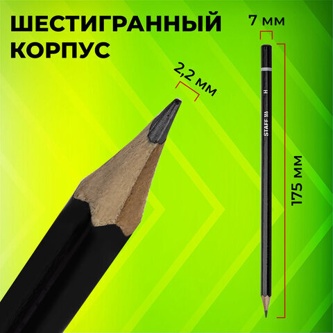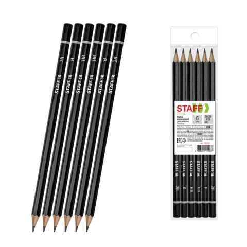 Карандаши чернографитные STAFF "College" BLP-254, НАБОР 6 шт., 2H-2B, черный корпус, 181254