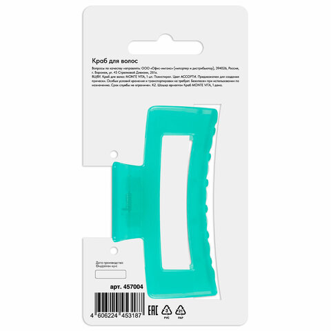 Краб для волос MONTE VITA – это незаменимый аксессуар для создания прически: от романтичной до строгой и деловой. Удобен и прост в обращении.