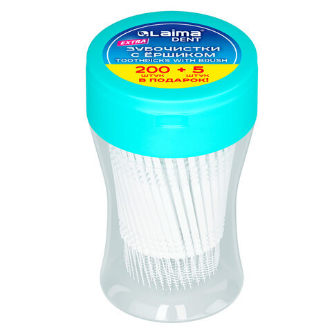 Зубочистки зубные, ёршики с щеточкой "200 шт. + 5 в подарок!", LAIMA DENT, 609400