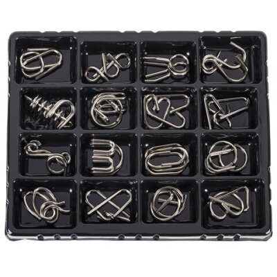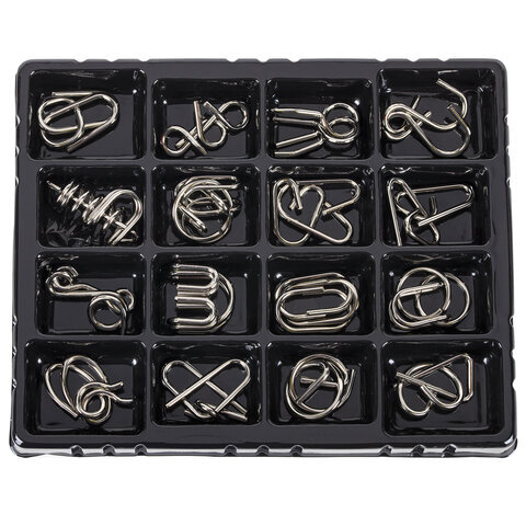Головоломки металлические большие ЗОЛОТАЯ СКАЗКА, набор 16 штук, разные уровни сложности, 664928
