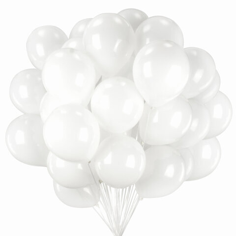 Шары воздушные ЗОЛОТАЯ СКАЗКА, 10" (25 см), КОМПЛЕКТ 50 штук, белые, пакет, 105000