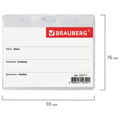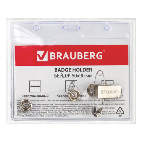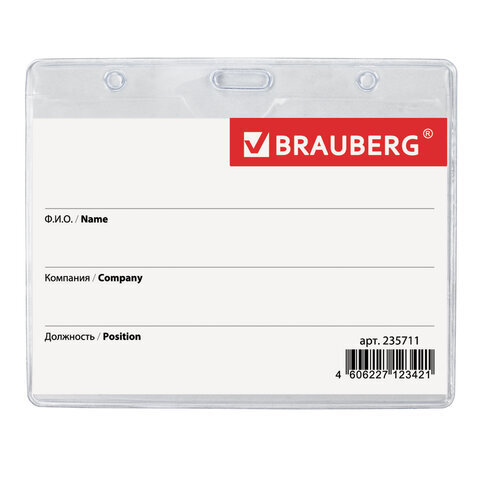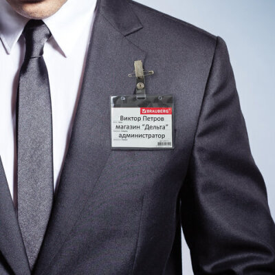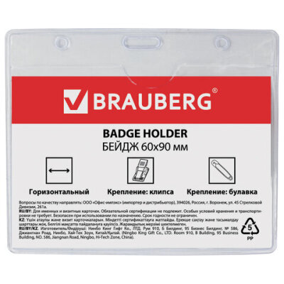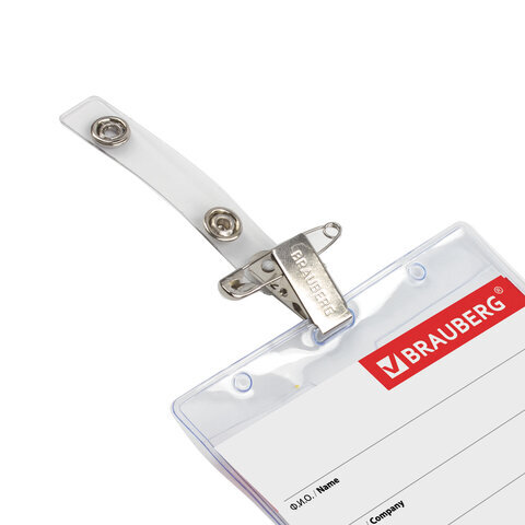 Горизонтальный бейдж BRAUBERG с клипсой и булавкой для именной карточки предназначен для идентификации сотрудников в компаниях, а также на семинарах, тренингах, презентациях и других мероприятиях.