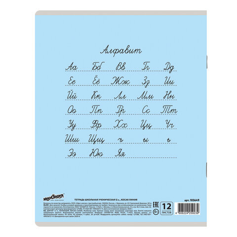 Тетрадь 12 л. ЮНЛАНДИЯ КЛАССИЧЕСКАЯ, косая линия, обложка картон, АССОРТИ 5 видов.105649