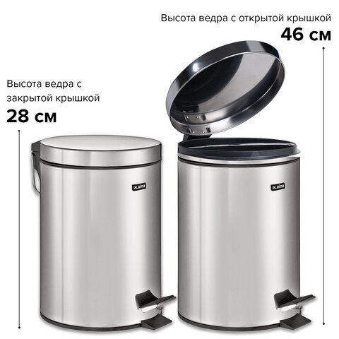 Ведро мусорное с педалью 5 литров "Classic", ЗЕРКАЛЬНОЕ, нержавеющая сталь, со съемным внутренним ведром, LAIMA, 232260