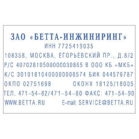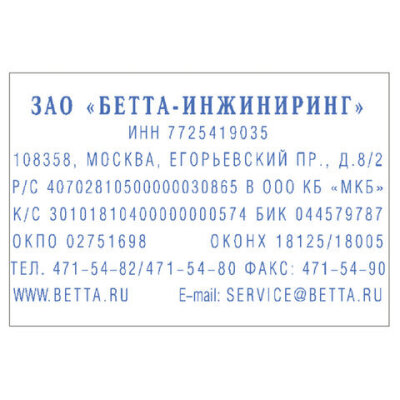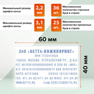 | Размер оттиска | 60х40 мм |