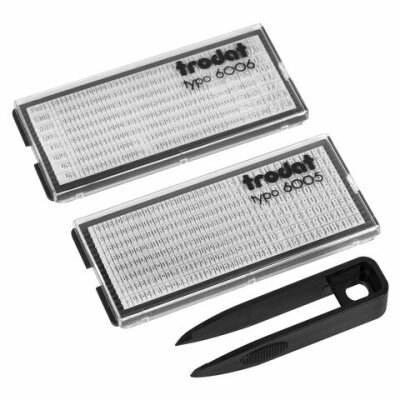 | В комплекте | две кассы шрифта, пинцет, штемпельная подушка |