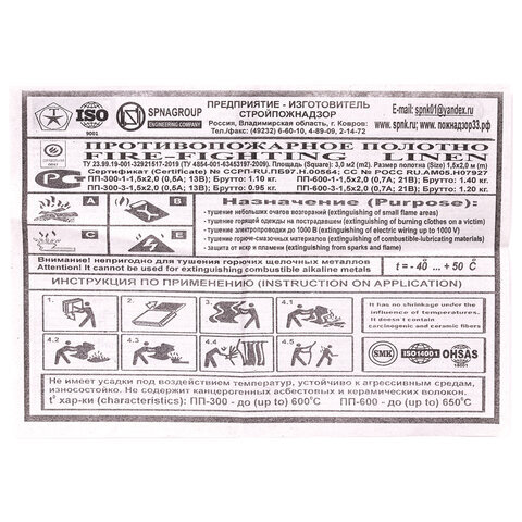 | Максимальная температура кратковременного использования до 5 сек | 650 °С |