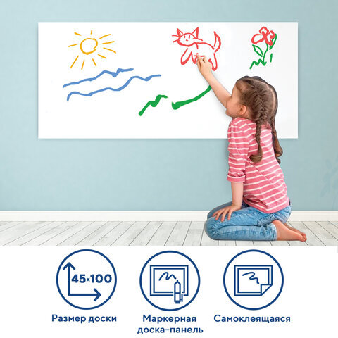 Самоклеящаяся маркерная доска-панель BRAUBERG предназначена для письма и рисования специальными маркерами для белой доски.