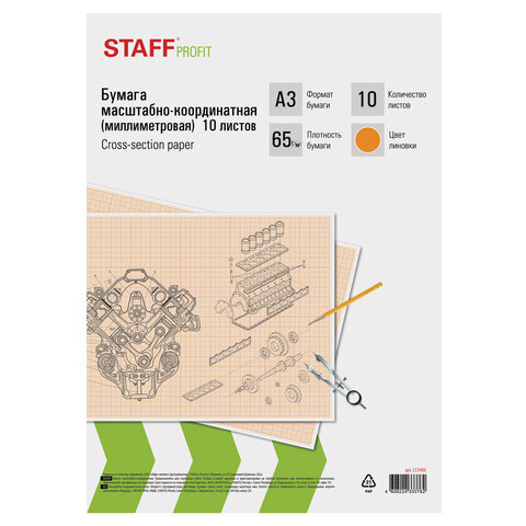 Масштабно-координатная бумага STAFF предназначена для выполнения чертежно-графических работ карандашом или тушью. Применяется при создании инженерных схем и чертежей, планов и карт, а также при рисовании выкройки.