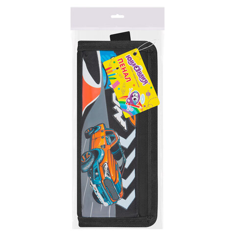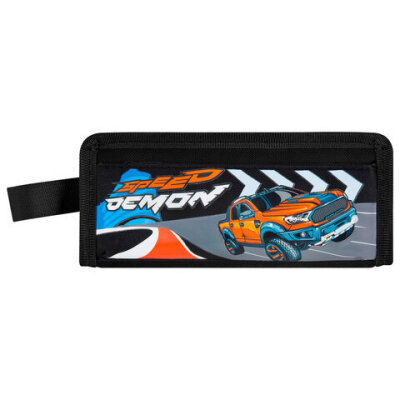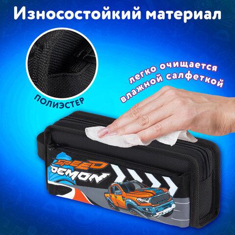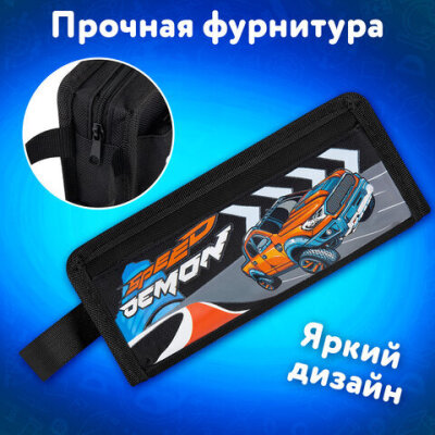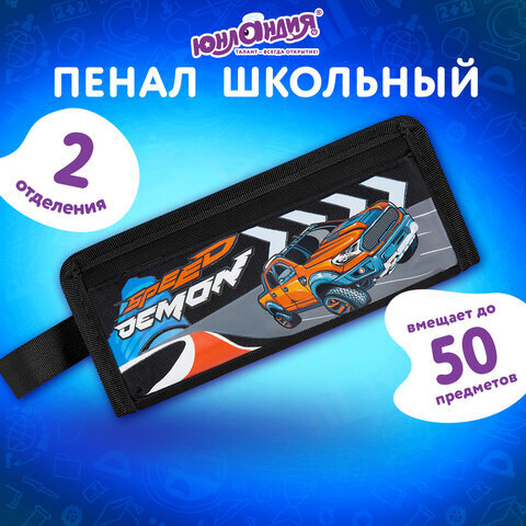 Пенал ЮНЛАНДИЯ ЮНИОР, 2 отделения, с ручкой, полиэстер, "Speed demon", 21х8х6 см, 273817