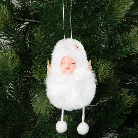Елочные украшение 14,5 см "Пушистый ангелочек", полиэстер, белый, ЗОЛОТАЯ СКАЗКА, 592526