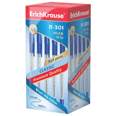 • Классическая шариковая ручка ERICH KRAUSE серии R-301 со стандартным типом пишущего узла и заменяемым стержнем.