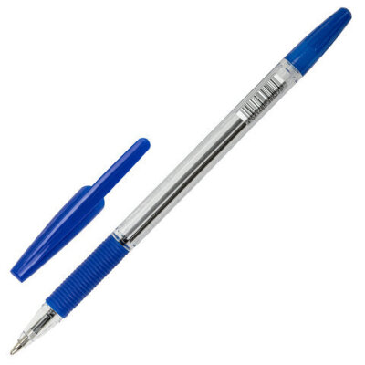 Ручка шариковая с грипом ERICH KRAUSE "R-301 Grip", СИНЯЯ, корпус прозрачный, узел 1 мм, линия письма 0,5 мм, 39527