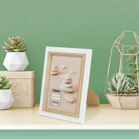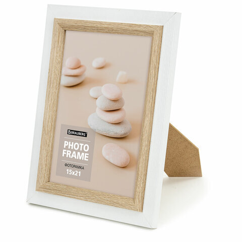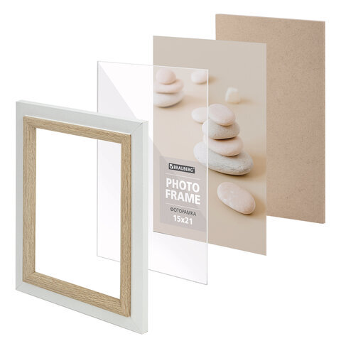 Рамка 15х21 см небьющаяся, багет 35 мм, МДФ, BRAUBERG "Esquire", белая/капучино, 391255