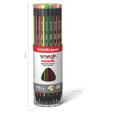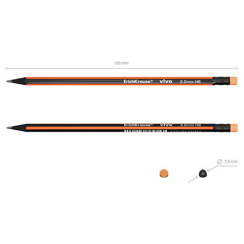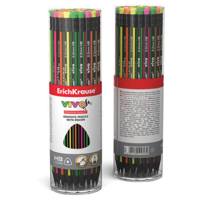• Чернографитный карандаш ERICH KRAUSE "Vivo" поставляется с ластиком.