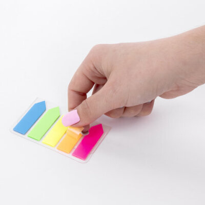 Яркие пластиковые полупрозрачные закладки STAFF в виде стрелок акцентируют внимание на важных страницах книги, журнала, каталога и др.