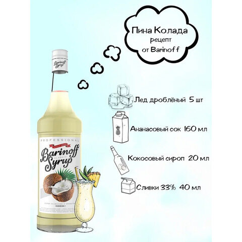 Сироп BARINOFF "Кокос", 1 л, стеклянная бутылка