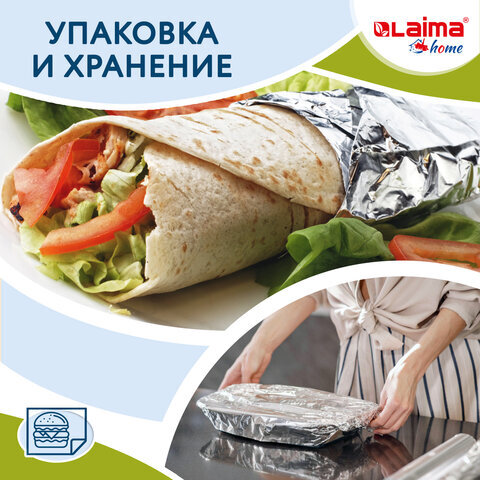 Фольга пищевая алюминиевая LAIMA HOME предназначена для приготовления, упаковки, хранения и замораживания продуктов.