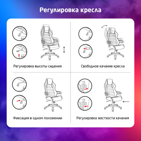 • Отличная посадка, боковая поддержка, плотная набивка, внимание к деталям - всё это объединяет в себе игровое кресло BRABIX "Techno GM-002" с креслами, установленными в лучших спорткарах.