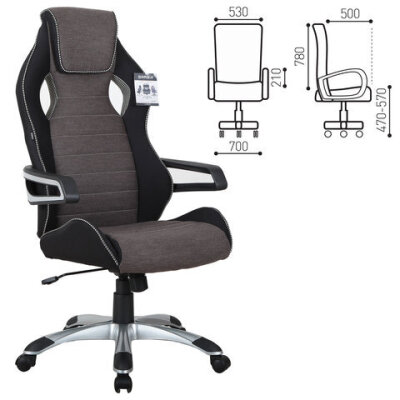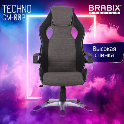 Кресло компьютерное BRABIX "Techno GM-002", ткань, черное/серое, вставки белые, 531815