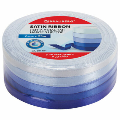 Лента атласная ширина 6 мм, СИНИЙ СПЕКТР, набор 5 цветов по 23 м, BRAUBERG, 591494