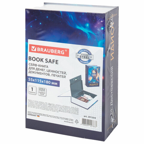 Сейф BRAUBERG из прочной стали с кодовым замком стилизован под книгу "Идиот" и обеспечивает надёжную защиту от несанкционированного доступа. Незаметный на книжной полке дома или в офисе, он станет отличным подарком для практичных людей.