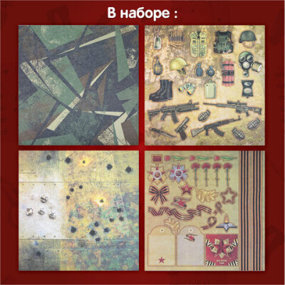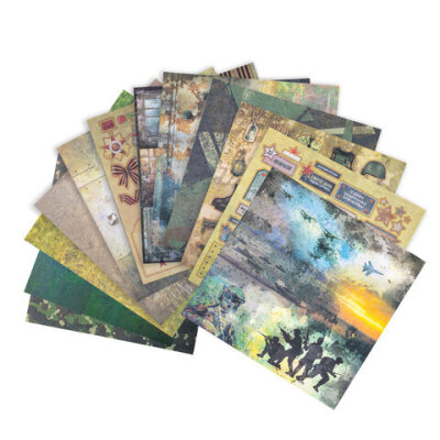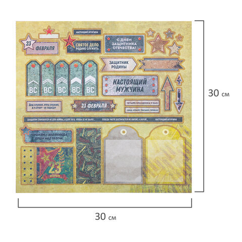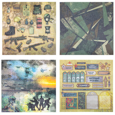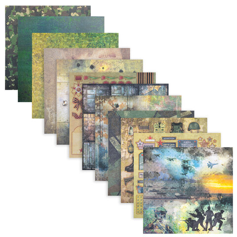 Бумага для скрапбукинга 30х30 см "Милитари", двусторонняя, 12 листов, 180 г/м2, ОСТРОВ СОКРОВИЩ, 665436