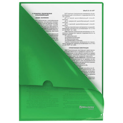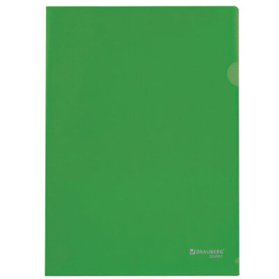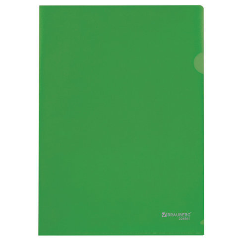 Папка-уголок жесткая, непрозрачная BRAUBERG, зеленая, 0,15 мм, 224881