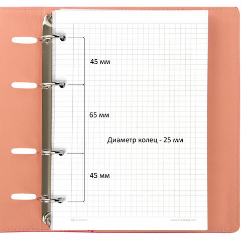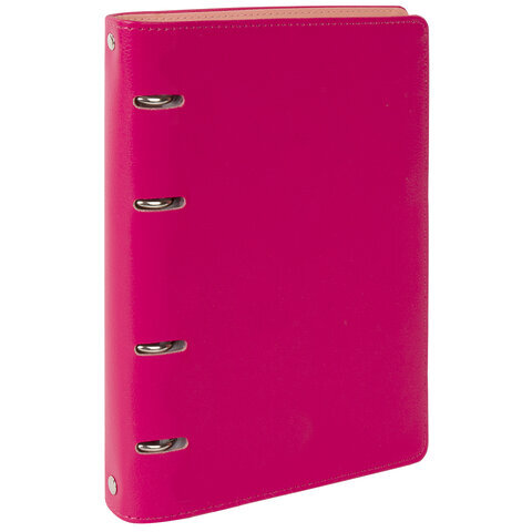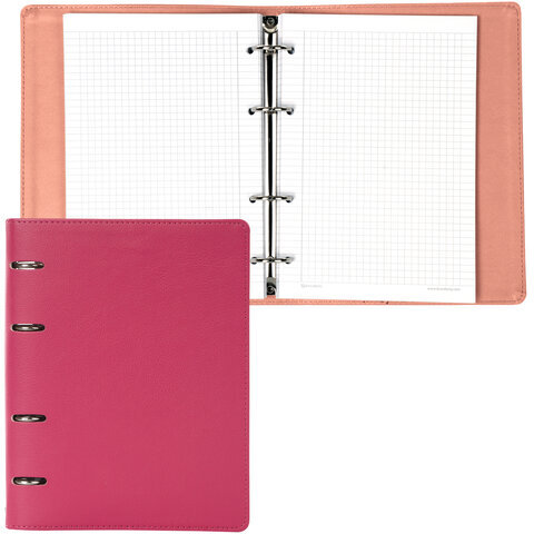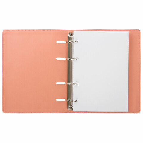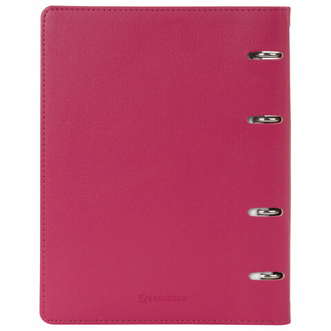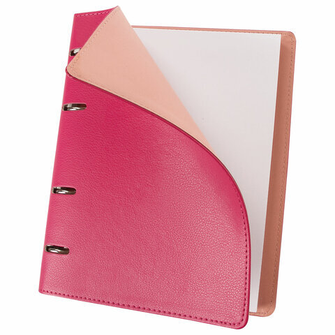 Тетрадь на кольцах А5 (180х220 мм), 120 листов, под кожу, клетка, BRAUBERG "Joy", розовый/светло-розовый, 129990