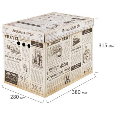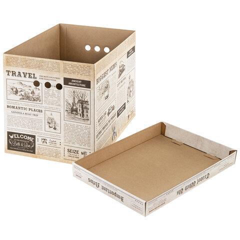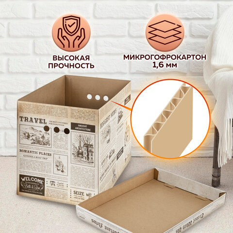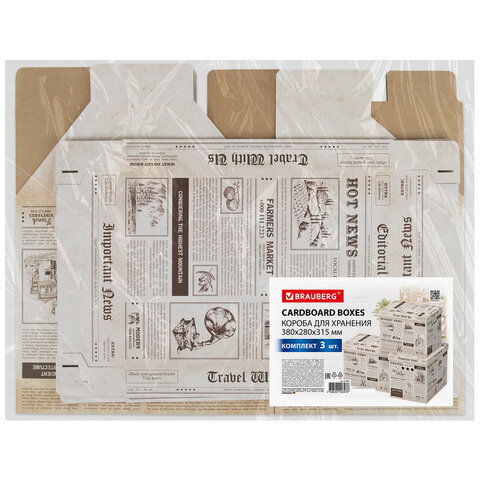 Короб для хранения из микрогофрокартона 380х280х315 мм, КОМПЛЕКТ 3 ШТ., BRAUBERG HOME "Газета", 271822