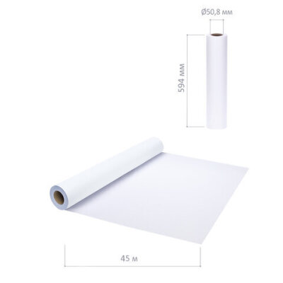 Бумага широкоформатная рулон для плоттера, 594 мм х 45 м х втулка 50,8 мм, 90 г/м2, белизна CIE 146%, BRAUBERG, 110629