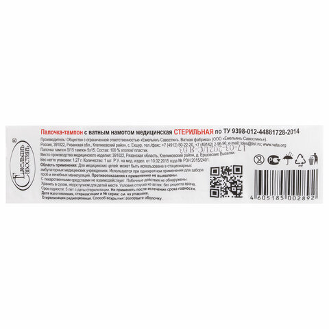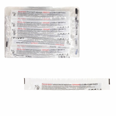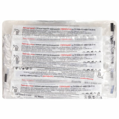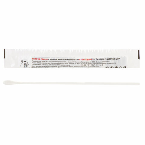 Медицинская стерильная палочка-тампон ЕМЕЛЬЯНЪ САВОСТИНЪ с ватным намотом предназначена для взятия проб биологического материала для лабораторного изучения, а также для обработки ран растворами антисептиков, йода и другими лекарственными средствами.