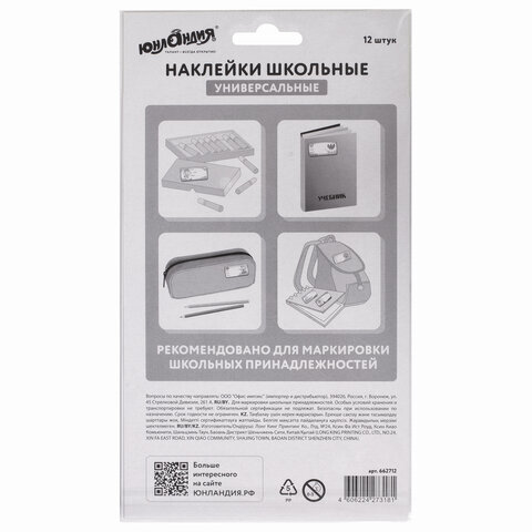 | Количество наклеек | 12 шт. |