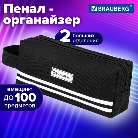 Пенал-органайзер BRAUBERG предназначен для хранения школьных принадлежностей, вмещает до 100 канцелярских предметов стандартного размера.