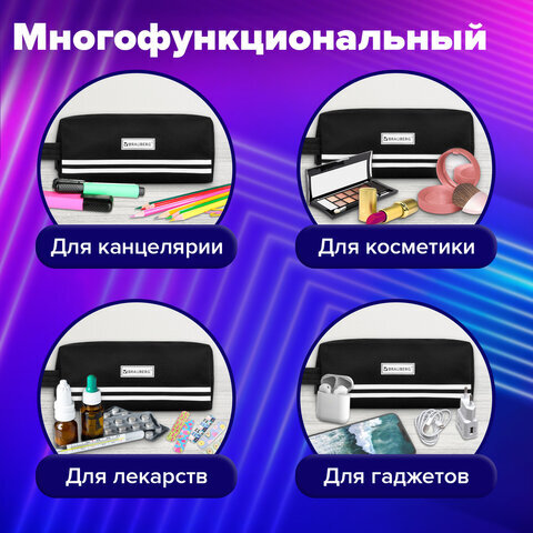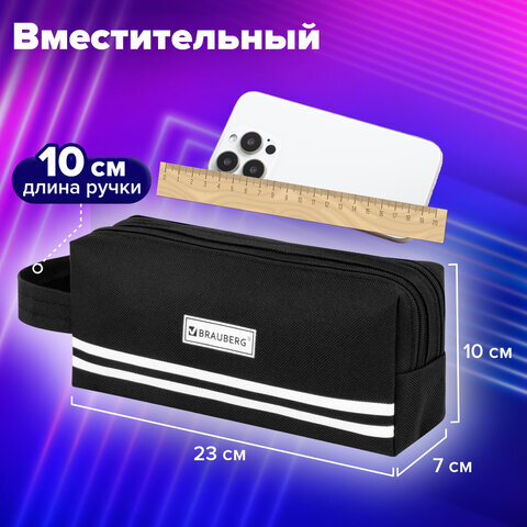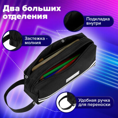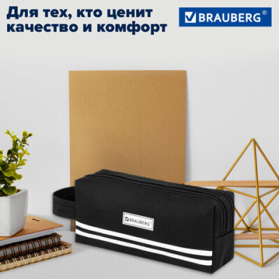 Пенал-органайзер BRAUBERG с ручкой, 2 отделения, полиэстер, 23x10 см, черный, 273592