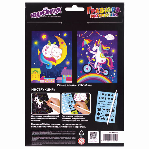 | Комплектация | 2 основы с контуром рисунка, ручка-гравер/штихель, трафарет |