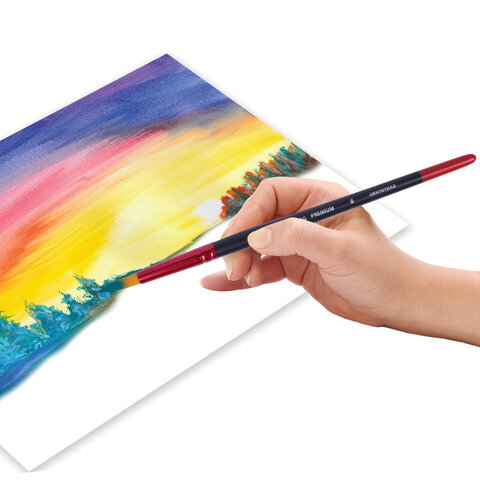 Кисть из синтетики BRAUBERG PREMIUM отличается своей универсальностью, прекрасно подходит для работы как жидкими, так и густыми красками.