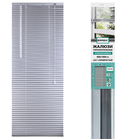 Жалюзи горизонтальные BRABIX 60х160 см, АЛЮМИНИЙ, цвет серебристый, 606035