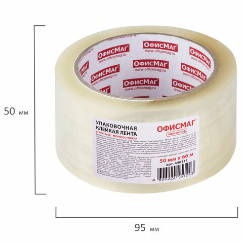Клейкая лента упаковочная, 50 мм х 66 м, прозрачная, УСИЛЕННАЯ, МОРОЗОСТОЙКАЯ, толщина 50 микрон, ОФИСМАГ, 440111